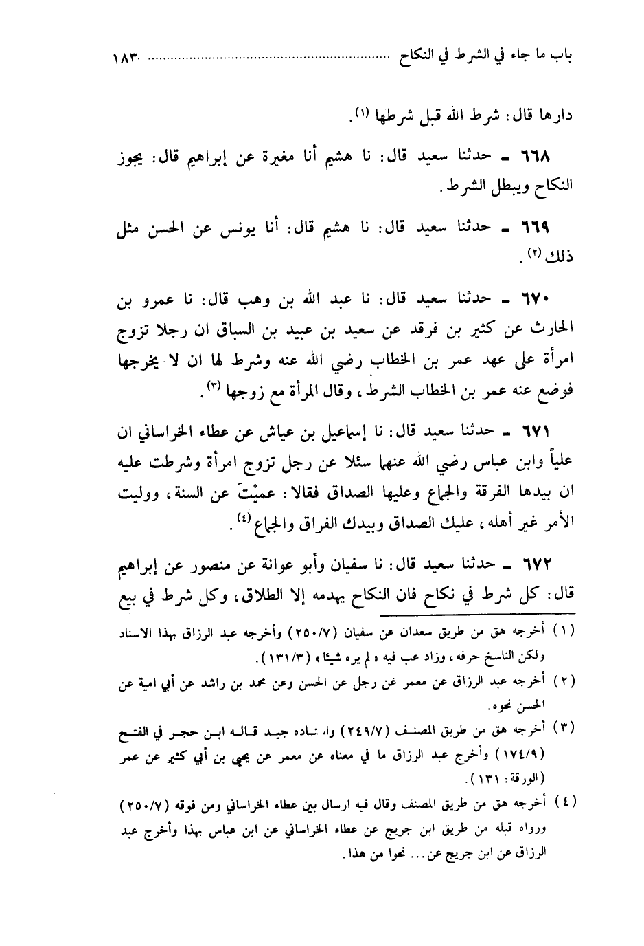 668- حَدَّثَنَا هُشَيْمٌ ، أَخْبَرَنَا مُغِيرَةُ ، عَنْ إِبْرَاهِيمَ ، قَالَ : يَجُوزُ النِّكَاحُ وَيَبْطُلُ الشَّرْطُ.