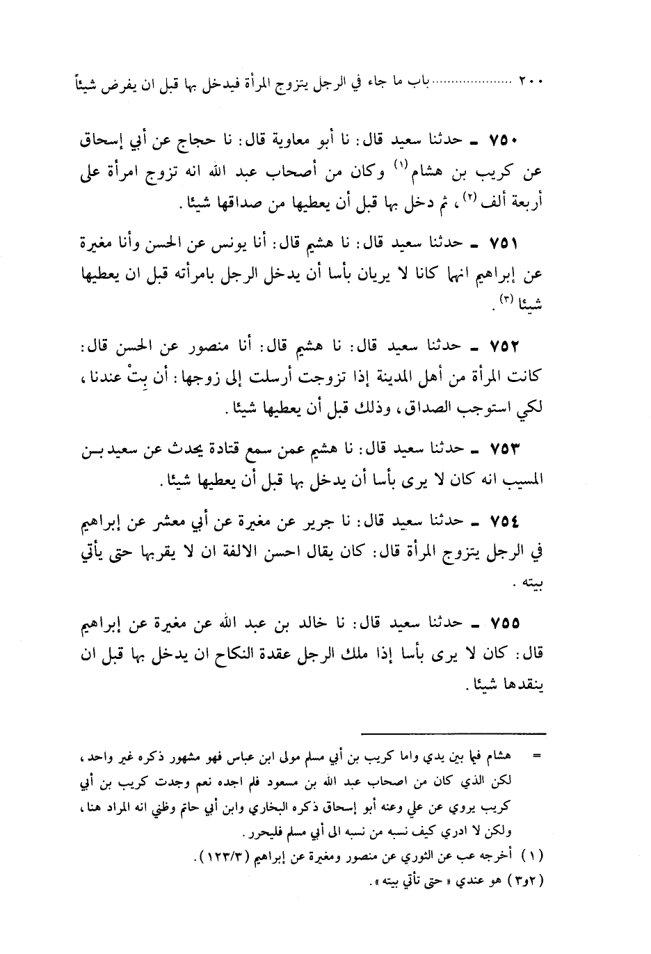 753- حَدَّثَنَا هُشَيْمٌ ، عَمَّنْ سَمِعَ قَتَادَةَ يُحَدِّثُ ، عَنْ سَعِيدِ بْنِ الْمُسَيَّبِ ، أَنَّهُ كَانَ لاَ يَرَى بَأْسًا أَنْ يَدْخُلَ بِهَا قَبْلَ أَنْ يُعْطِيَهَا شَيْئًا.