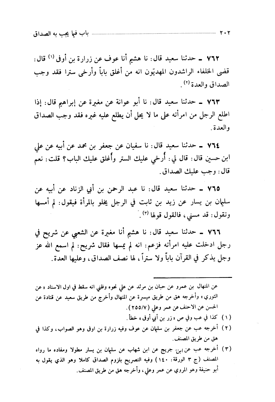 764- حَدَّثَنَا سُفْيَانُ ، عَنْ جَعْفَرِ بْنِ مُحَمَّدٍ ، عَنْ أَبِيهِ ، عَنْ عَلِيِّ بْنِ حُسَيْنٍ قَالَ : قَالَ لِي : أُرْخِيَ عَلَيْكَ السِّتْرُ وَأُغْلِقَ عَلَيْكَ الْبَابُ ؟ قُلْتُ : نَعَمْ ، قَالَ : وَجَبَ عَلَيْكَ الصَّدَاقُ.