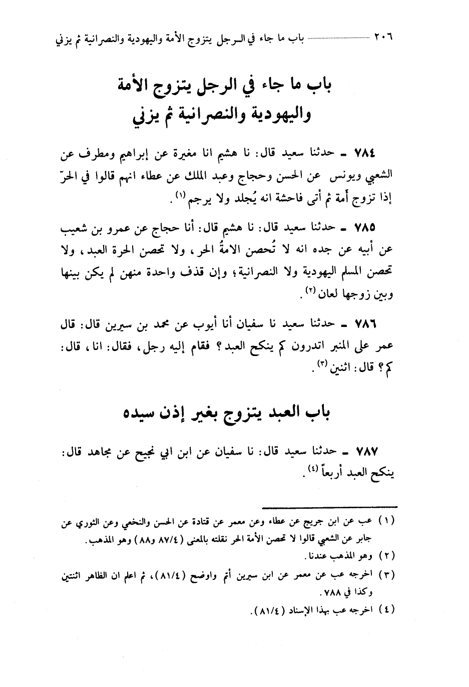 787- حَدَّثَنَا سُفْيَانُ ، عَنِ ابْنِ أَبِي نَجِيحٍ ، عَنْ مُجَاهِدٍ قَالَ : يَنْكِحُ الْعَبْدُ أَرْبَعًا.