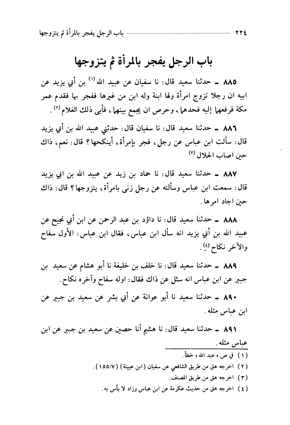 886- حَدَّثَنَا سُفْيَانُ ، قَالَ : حَدَّثَنِي عُبَيْدُ اللهِ بْنُ أَبِي يَزِيدَ قَالَ : سَأَلْتُ ابْنَ عَبَّاسٍ عَنْ رَجُلٍ فَجَرَ بِامْرَأَةٍ ، أَيَنْكِحُهَا ؟ قَالَ : نَعَمْ ، ذَاكَ حِينَ أَصَابَ الْحَلاَلَ.