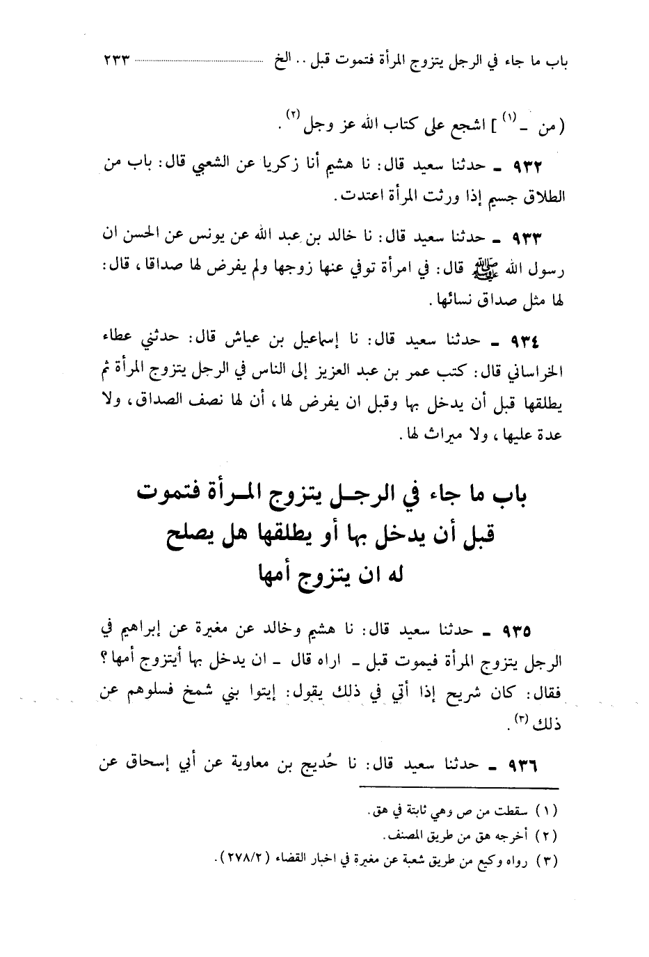 932- حَدَّثَنَا هُشَيْمٌ ، أَخْبَرَنَا زَكَرِيَّا ، عَنِ الشَّعْبِيِّ ، قَالَ : بَابٌ مِنَ الطَّلاَقِ جَسِيمٌ ، إِذَا وَرِثَتِ الْمَرْأَةُ اعْتَدَّتْ.