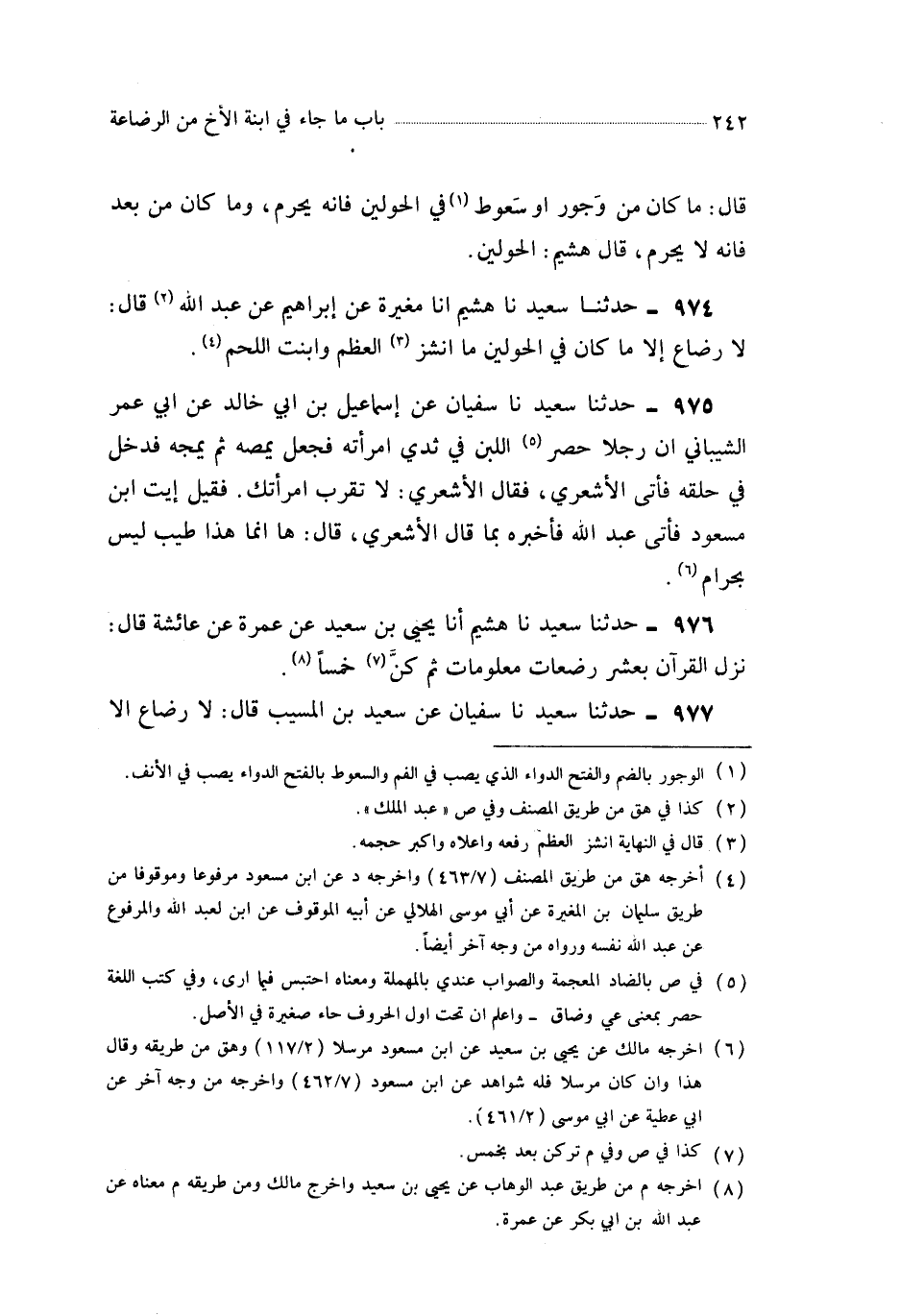 977- حَدَّثَنَا سُفْيَانُ ، عَنْ سَعِيدِ بْنِ الْمُسَيَّبِ ، قَالَ : لاَ رَضَاعَ إِلاَّ مَا كَانَ فِي الْمَهْدِ.