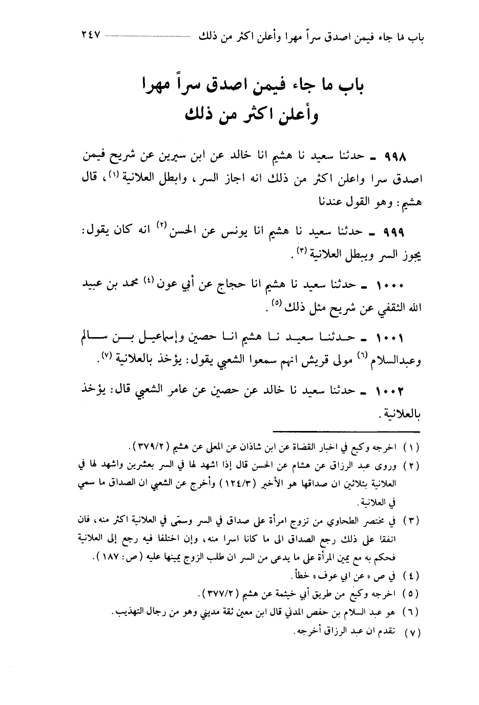 998- حَدَّثَنَا هُشَيْمٌ ، أَخْبَرَنَا خَالِدٌ ، عَنِ ابْنِ سِيرِينَ ، عَنْ شُرَيْحٍ فِيمَنْ أَصْدَقَ سِرًّا وَأَعْلَنَ أَكْثَرَ مِنْ ذَلِكَ أَنَّهُ أَجَازَ السِّرَّ ، وَأَبْطَلَ الْعَلاَنِيَةَ.