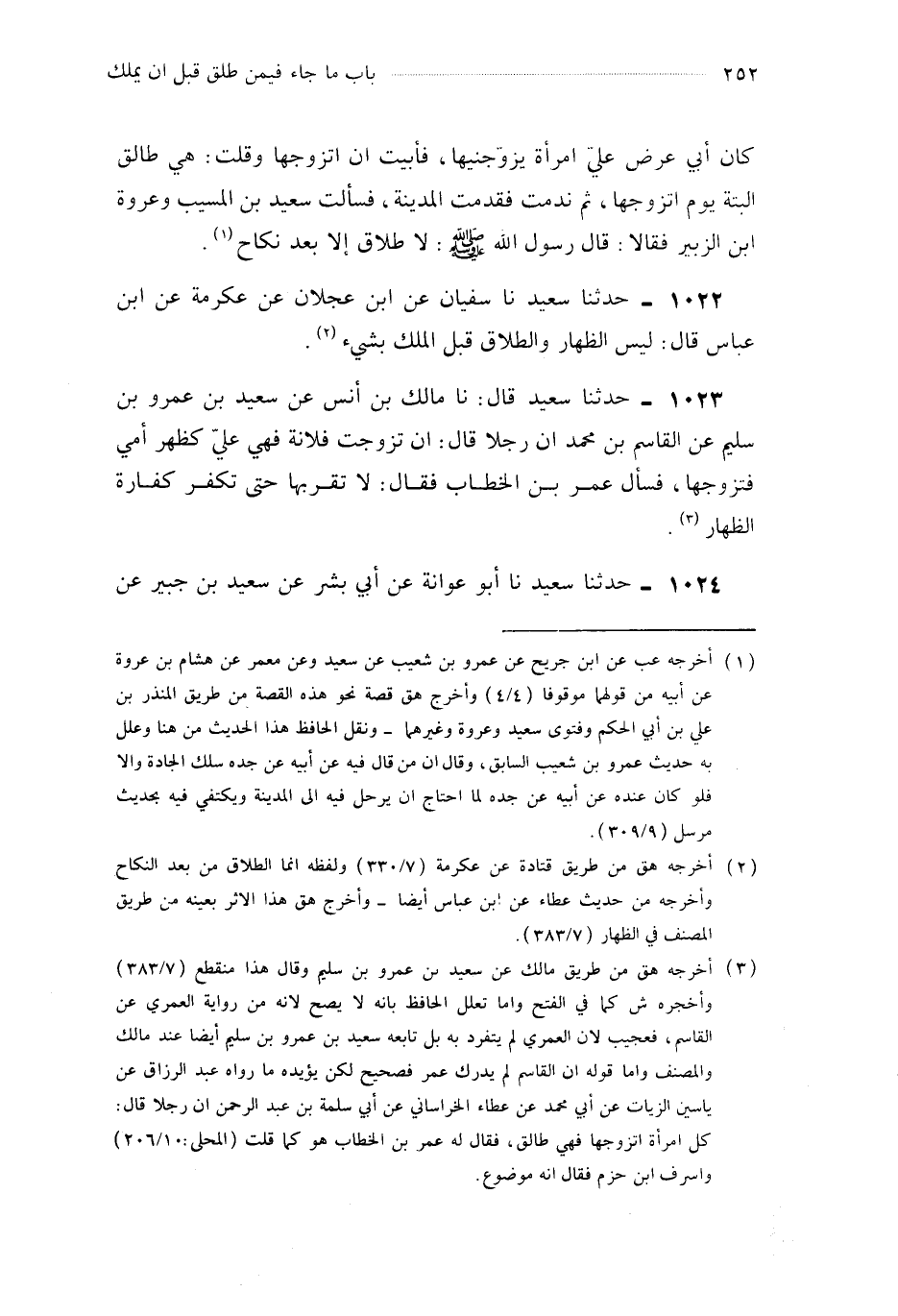 1022- حَدَّثَنَا سُفْيَانُ ، عَنِ ابْنِ عَجْلاَنَ ، عَنْ عِكْرِمَةَ ، عَنِ ابْنِ عَبَّاسٍ ، قَالَ : لَيْسَ الظِّهَارُ وَالطَّلاَقُ قَبْلَ الْمِلْكِ بِشَيْءٍ.