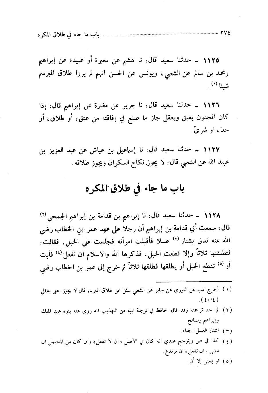 1125- حَدَّثَنَا هُشَيْمٌ ، عَنْ مُغِيرَةَ أو عُبَيْدَةَ عَنْ إِبْرَاهِيمَ ، وَمُحَمَّدُ بْنُ سَالِمٍ ، عَنِ الشَّعْبِيِّ ، وَيُونُسَ ، عَنِ الْحَسَنِ أَنَّهُمْ لَمْ يَرَوْا طَلاَقَ الْمُبَرْسَمِ شَيْئًا.