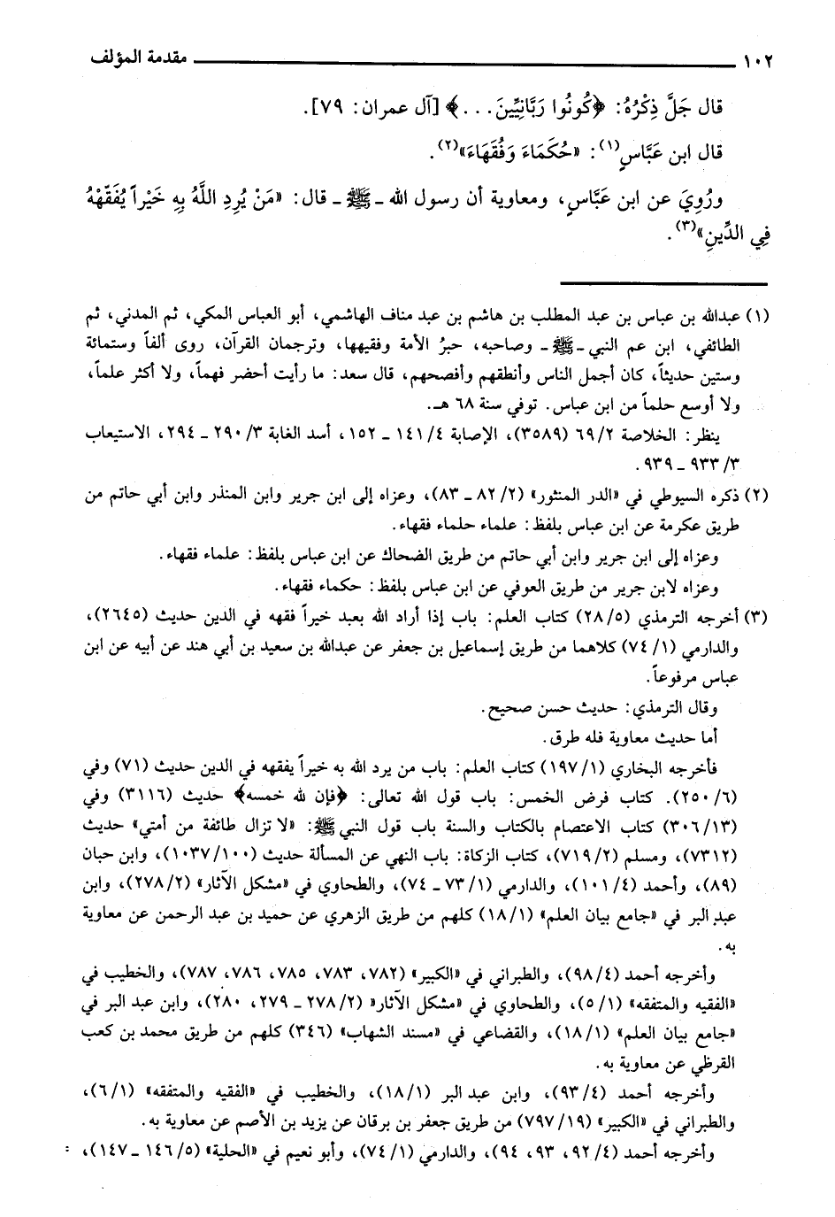 وروي عن ابن عباسٍ، ومعاوية أن رسول الله - صلى الله عليه وسلم - قال: "من يُرد الله به خيراً يفقهه في الدين".