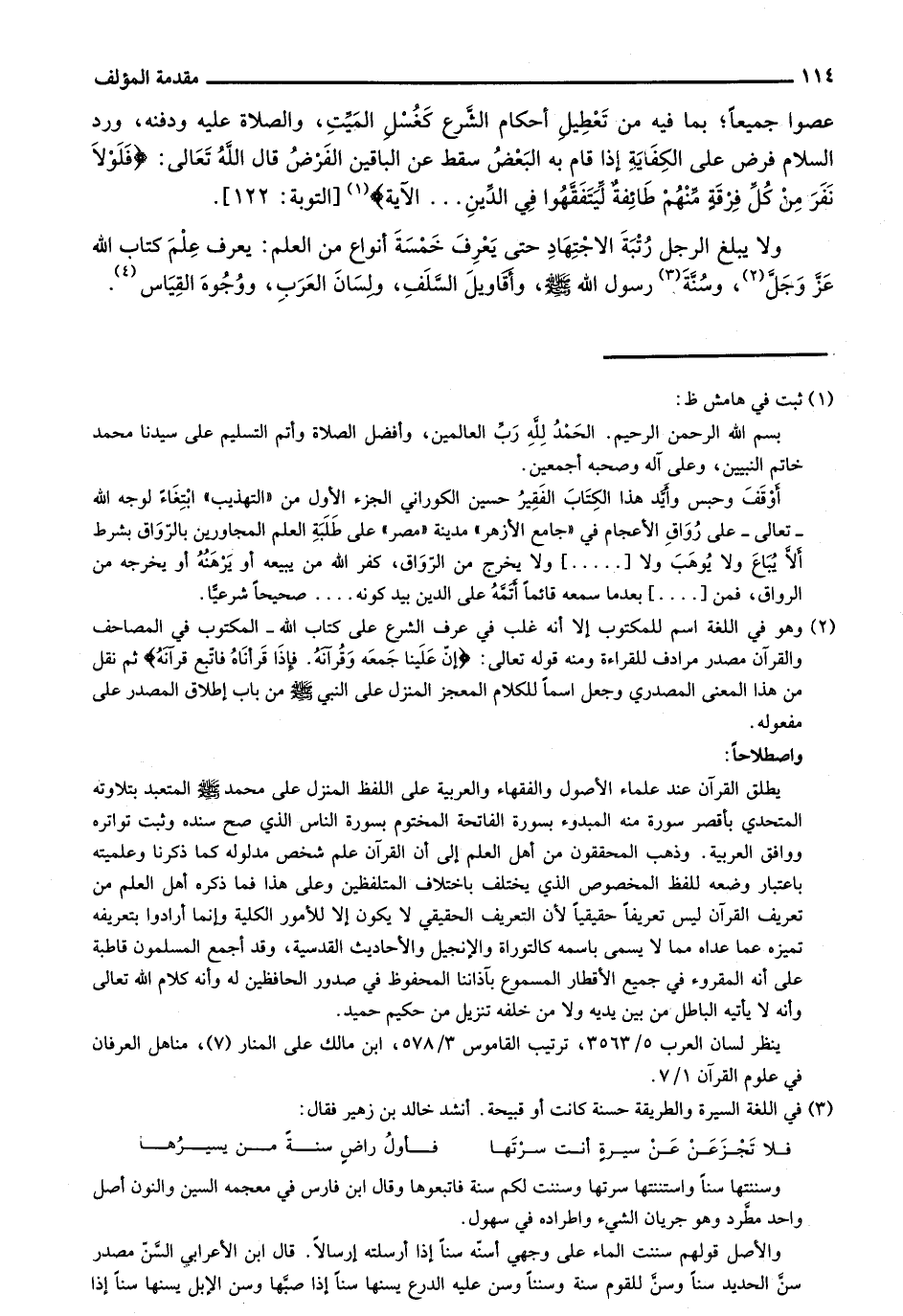 ولا يبلغ الرجل رُتبة الاجتهاد حتى يعرف خمسة أنواع من العلم: يعرف علم كتاب الله عز وجل، وسنة رسول الله صلى الله عليه وسلم، وأقاويل السلف، ولسان العرب، ووجوه القياس.