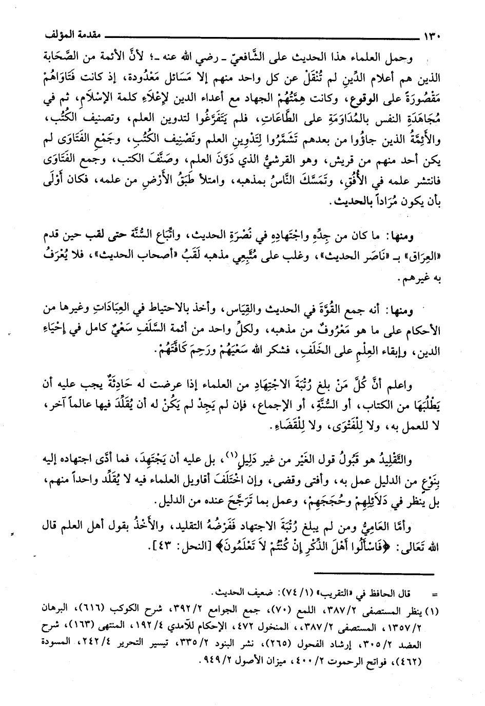 وأما العامي ومن لم يبلغ رتبة الاجتهاد ففرضه التقليد، والأخذ بقول أهل العلم قال الله تعالى: {} [النحل: 43].