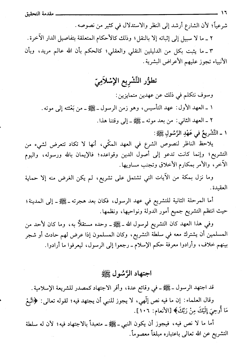 1 - التَّشْرِيعُ في عَهْدِ الرَّسُولِ صلى الله عليه وسلم: