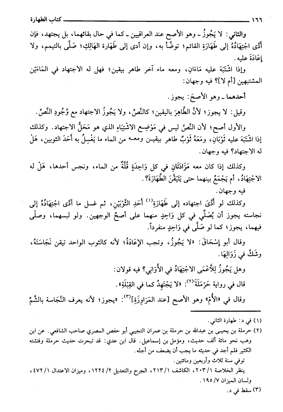 والأول أصح؛ لأن النص ليس في موضع الاشتباه الذي هو محل الاجتهاد. وكذلك إذا اشتبه عليه ثوبان، ومعه ثوبٌ طاهر بيقين ومعه من الماء ما يغسلُ به أحد الثوبين، هل له الاجتهاد؟ فيه وجهان.