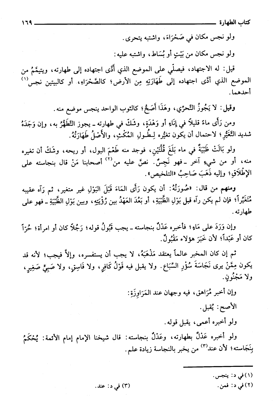 ولو أخبره عدلٌ بطهارته، وعدلٌ بنجاسته: قال شيخنا الإمام إمام الأئمة: يُحكم بنجاسته؛ لأن عند من يخبر بالنجاسة زيادة علم.