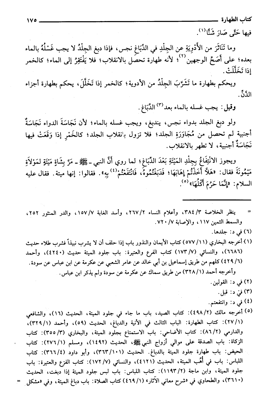 ويحكم بطهارة ما تشرب الجلد من الأدوية؛ كالخمر إذا تخلل، يحكم بطهارة أجزاء الدن.