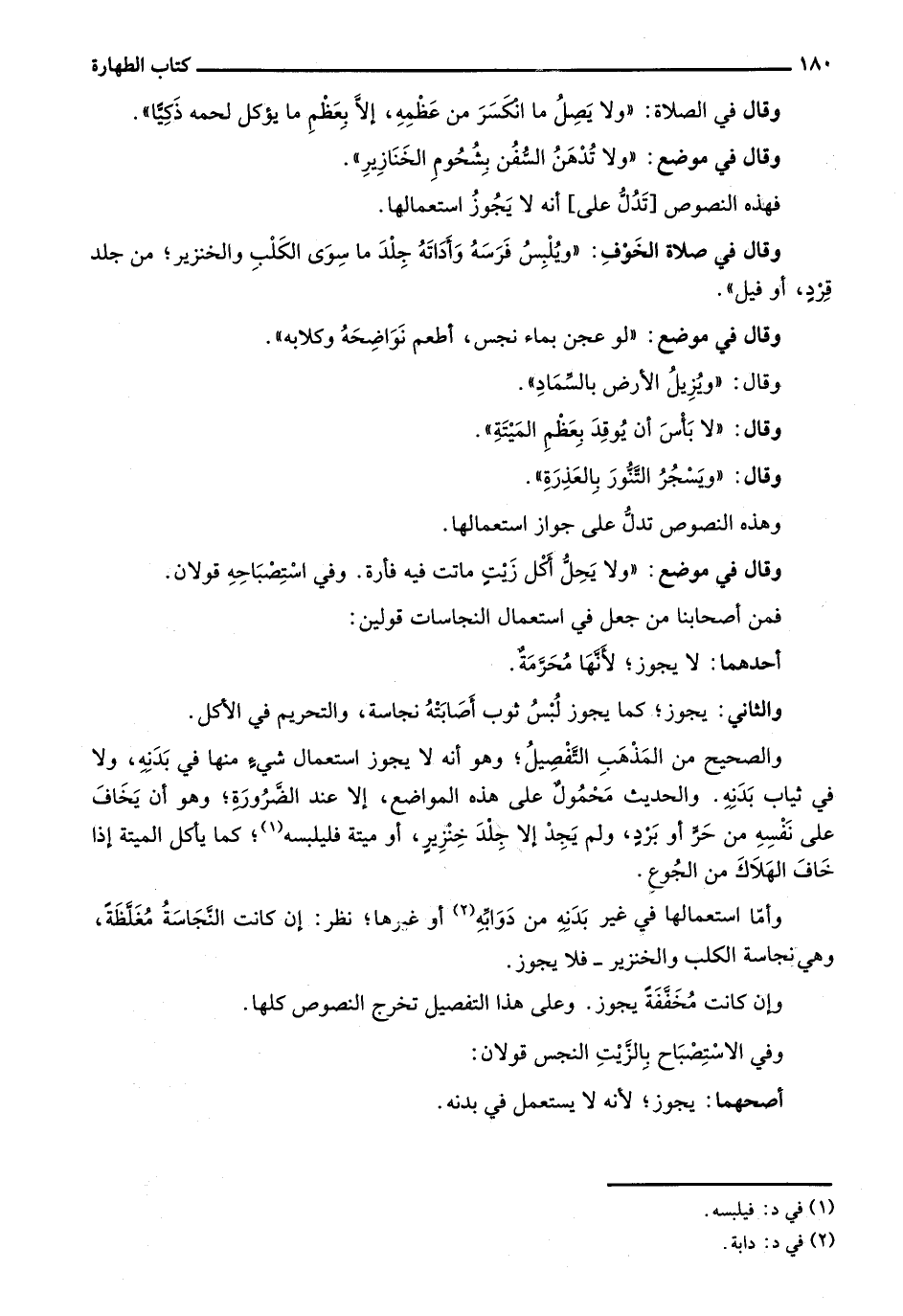 وقال في موضع: "ولا يحل أكل زيتٍ ماتت فيه فأرة. وفي استصباحه قولان.