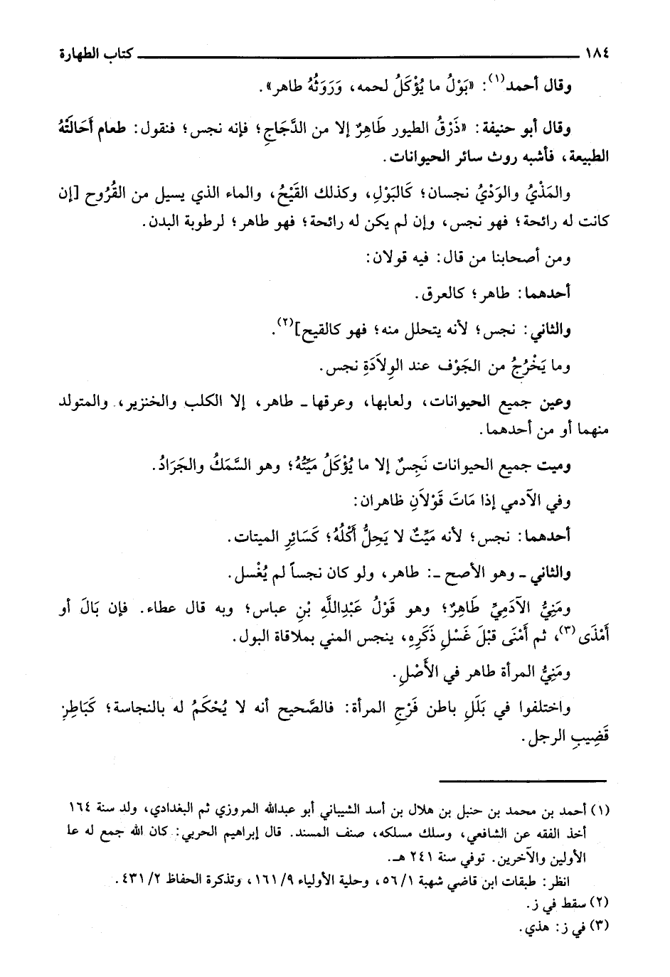 وقال أحمد: "بول ما يؤكل لحمه، وروثه طاهر".