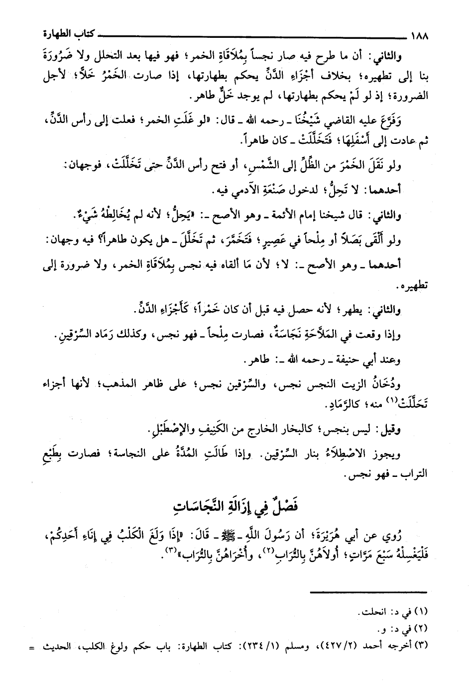 والثاني: أن ما طرح فيه صار نجساً بملاقاة الخمر؛ فهو فيها بعد التحلل ولا ضرورة بنا إلى تطهيره؛ بخلاف أجزاء الدن يحكم بطهارتها، إذا صارت الخمر خلاً؛ لأجل الضرورة؛ إذ لو لم يحكم بطهارتها، لم يوجد خل طاهر.