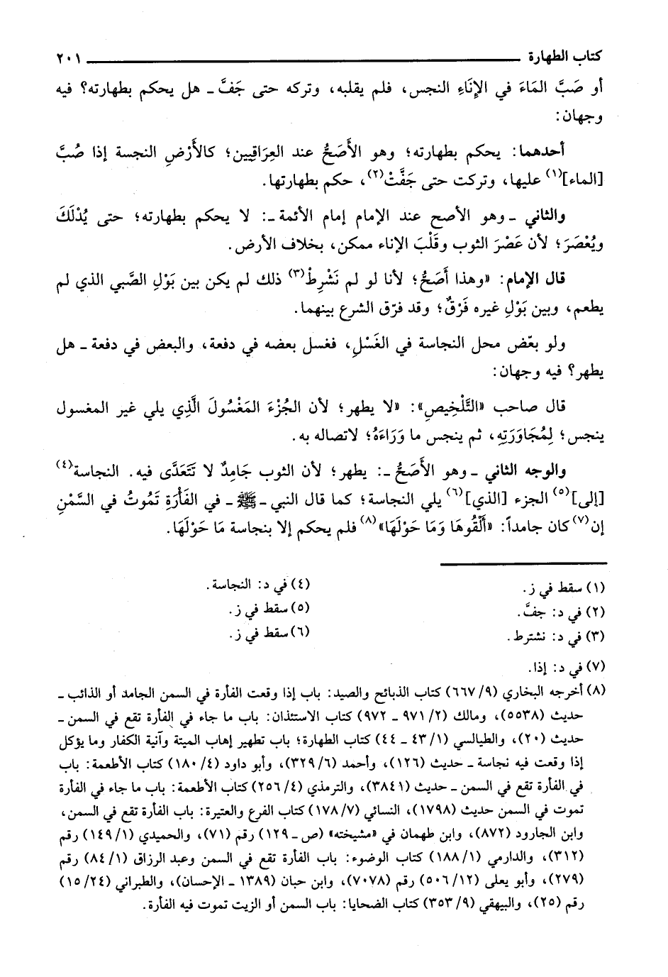 أحدهما: يحكم بطهارته؛ وهو الأصح عند العراقيين؛ كالأرض النجسة إذا صُبَّ [الماء] عليها، وتركت حتى جفت، حكم بطهارتها.