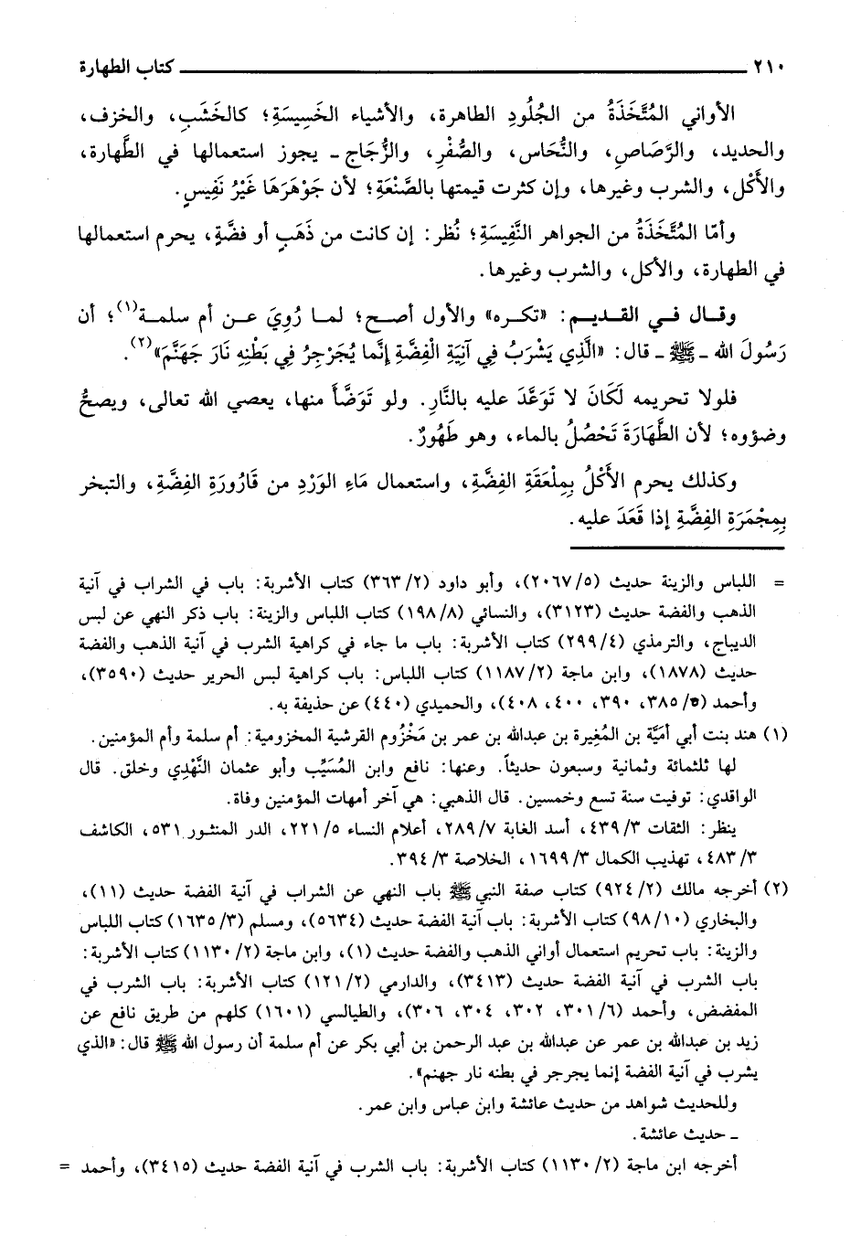 وقال في القديم: "تكره" والأول أصح؛ لما روي عن أم سلمة؛ أن رسول الله - صلى الله عليه وسلم- قال: "الذي يشرب في آنية الفضة إنما يجرجر في بطنه نار جهنم".