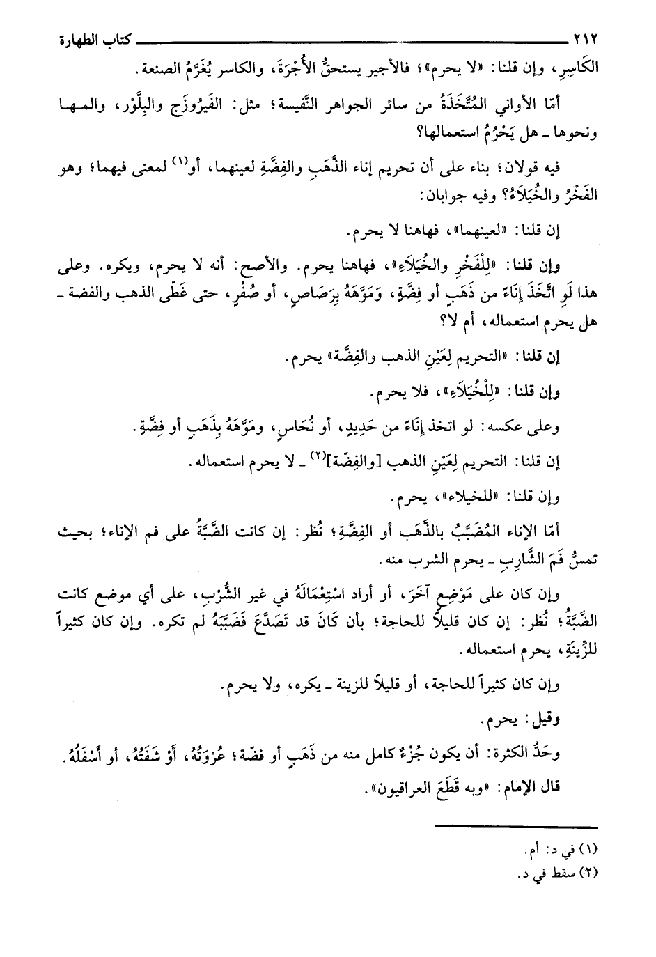 وإن كان على موضعٍ آخر، أو أراد استعماله في غير الشرب، على أي موضع كانت الضبة؛ نظر: إن كان قليلاً للحاجة؛ بأن كان قد تصدع فضببه لم تكره. وإن كان كثيراً للزينة، يحرم استعماله.
