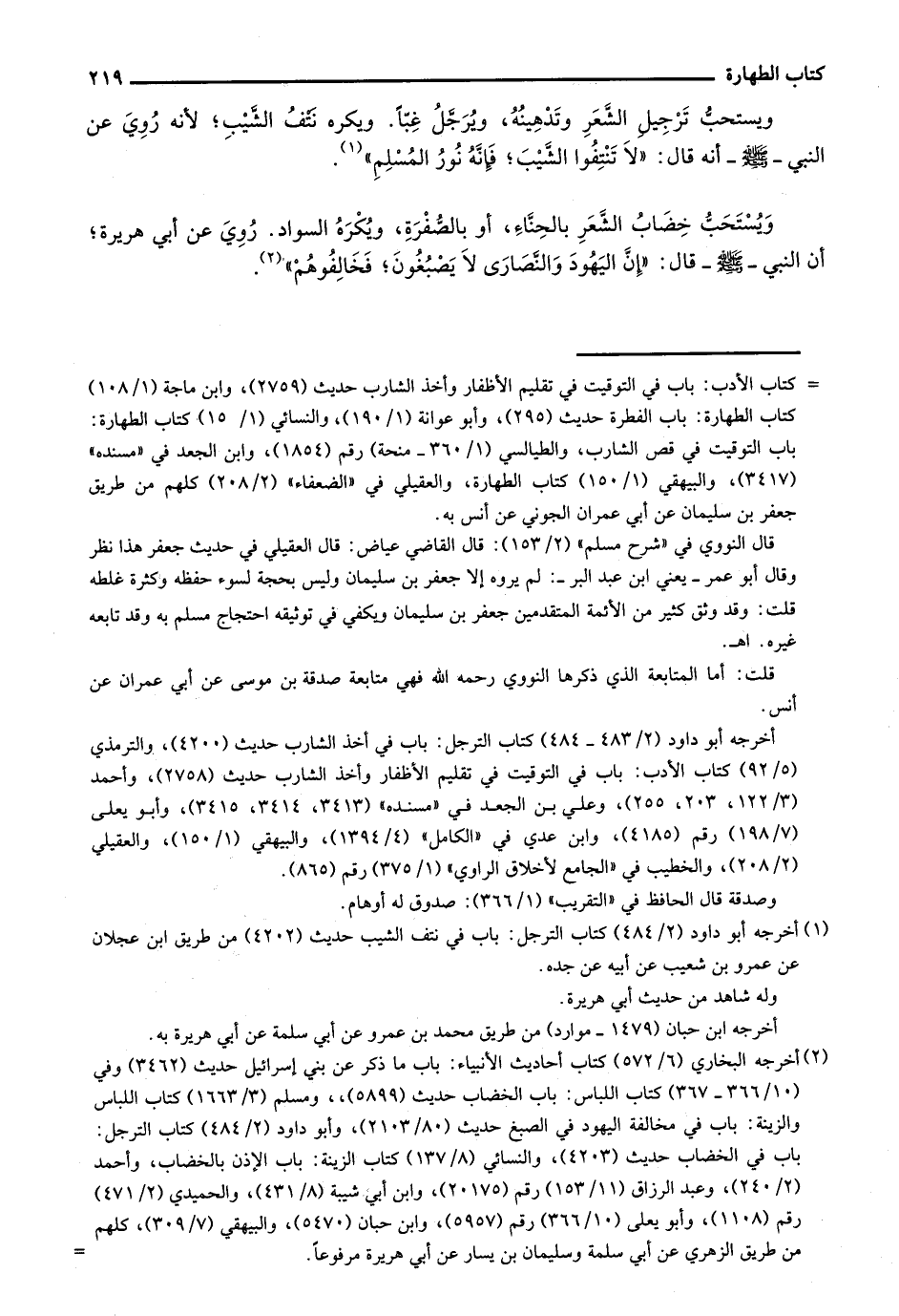 ويستحب خضاب الشعر بالحناء، أو بالصفرة، ويكره السواد. روي عن أبي هريرة؛ أن النبي - صلى الله عليه وسلم- قال: "إن اليهود والنصارى لا يصبغون؛ فخالفوهم".