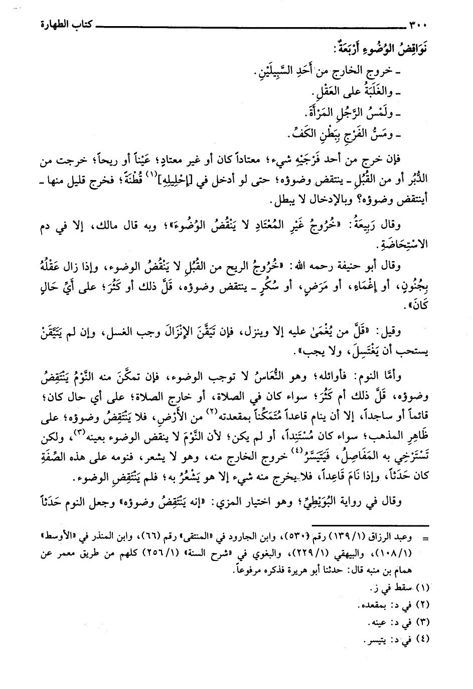نواقض الوضوء أربعةٌ: