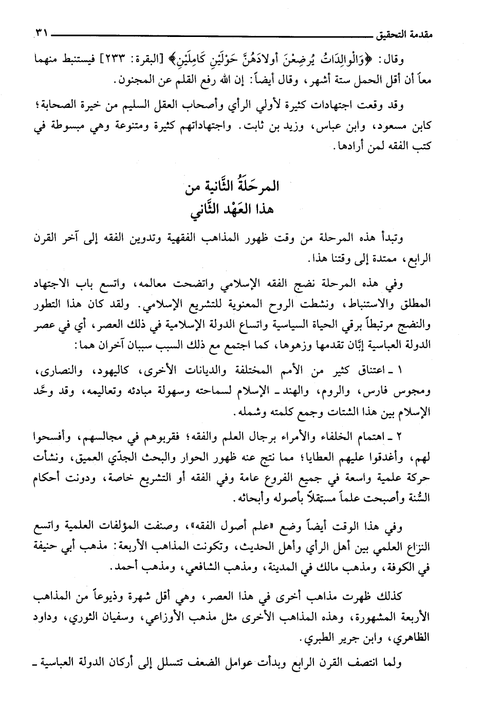 وفي هذه المرحلة نضج الفقه الإسلامي واتضحت معالمه، واتسع باب الاجتهاد المطلق والاستنباط، ونشطت الروح المعنوية للتشريع الإسلامي. ولقد كان هذا التطور والنضج مرتبطاً برقي الحياة السياسية واتساع الدولة الإسلامية في ذلك العصر، أي في عصر الدولة العباسية إبَّان تقدمها وزهوها، كما اجتمع مع ذلك السبب سببان آخران هما: