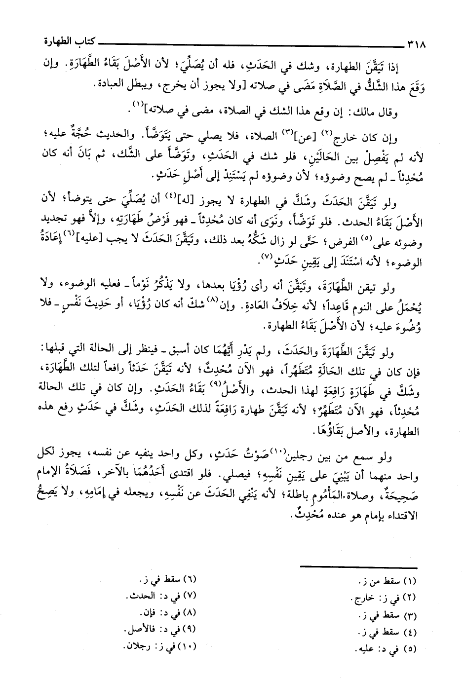 وقال مالك: عن وقع هذا الشك في الصلاة، مضى في صلاته].