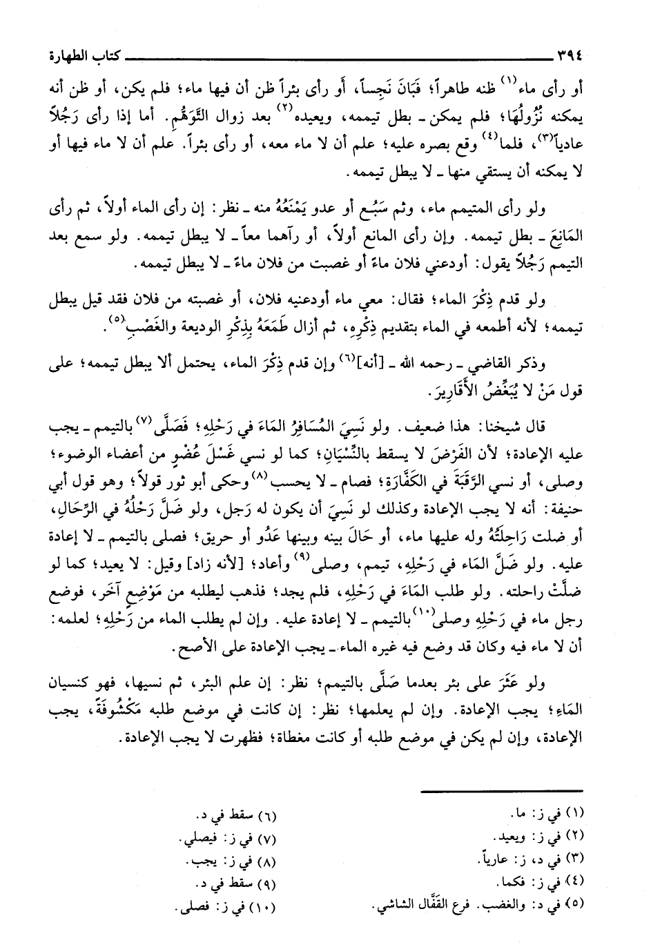 أو رأى ماء ظنه طاهراً؛ فبان نجساً، أو رأى بئراً ظن أن فيها ماء؛ فلم يكن، أو ظن أنه يمكنه نزولها؛ فلم يمكن- بطل تيممه، ويعيده بعد زوال التوهم. أما إذا رأى رجلاً عادياً، فلما وقع بصره عليه؛ علم أن لا ماء معه، أو رأى بئراً. علم أن لا ماء فيها أو لا يمكنه أن يستقي منها- لا يبطل تيممه.