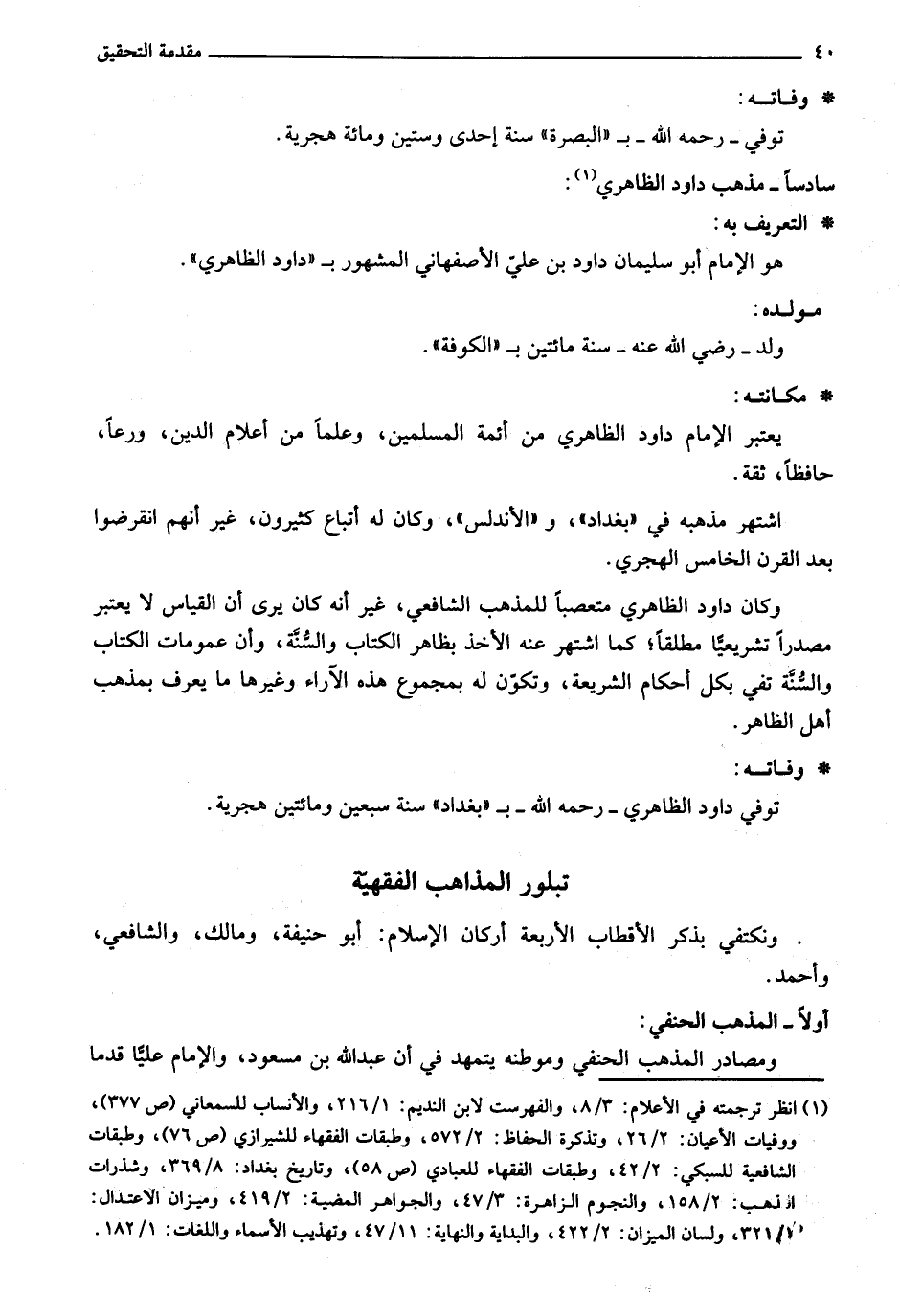 ونكتفي بذكر الأقطاب الأربعة أركان الإسلام: أبو حنيفة، ومالك، والشافعي، وأحمد.