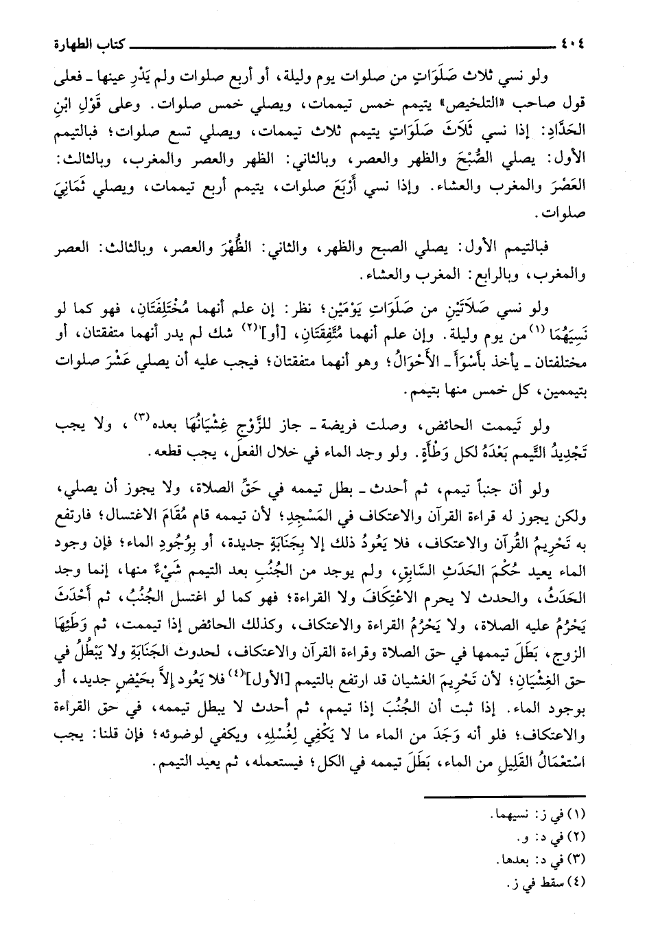 ولو نسي ثلاث صلواتٍ من صلوات يوم وليلة، أو أربع صلوات ولم يدر عينها- فعلى قول صاحب "التلخيص" يتيمم خمس تيممات، ويصلي خمس صلوات. وعلى قول ابن الحداد: إذا نسي ثلاث صلواتٍ يتيمم ثلاث تيممات، ويصلي تسع صلوات؛ فبالتيمم الأول: يصلي الصبح والظهر والعصر، وبالثاني: الظهر والعصر والمغرب، وبالثالث: العصر والمغرب والعشاء. وإذا نسي أربع صلوات، يتيمم أربع تيممات، ويصلي ثماني صلوات.