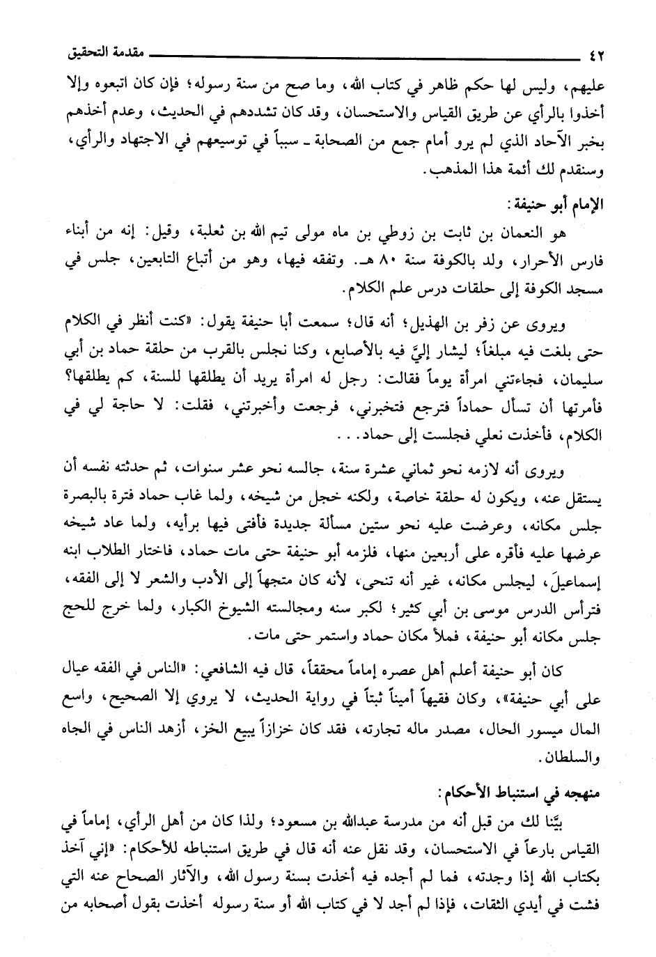 عليهم، وليس لها حكم ظاهر في كتاب الله، وما صح من سنة رسوله؛ فإن كان اتبعوه وإلا أخذوا بالرأي عن طريق القياس والاستحسان، وقد كان تشددهم في الحديث، وعدم أخذهم بخبر الآحاد الذي لم يرو أمام جمع من الصحابة - سبباً في توسيعهم في الاجتهاد والرأي، وسنقدم لك أئمة هذا المذهب.