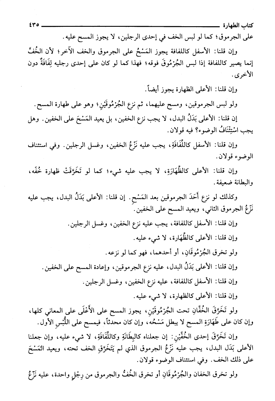 ولو تخرق الخفان والجرموقان أو تخرق الخف والجرموق من رِجلٍ واحدة، عليه نزع