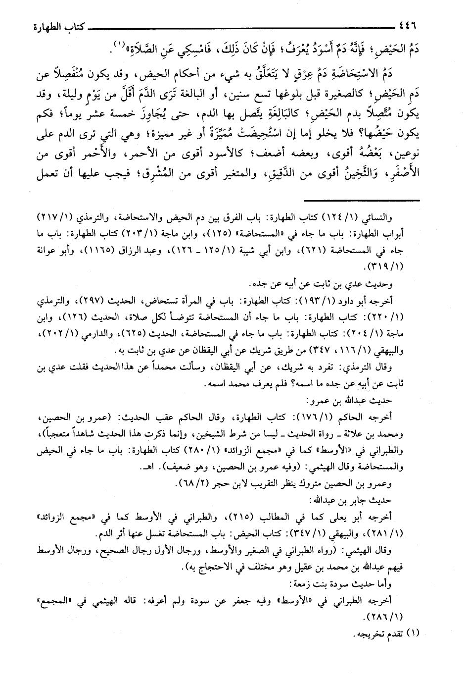 دم الاستحاضة دمُ عرقٍ لا يتعلق به شيء من أحكام الحيض، وقد يكون منفصلاً عن دم الحيض؛ كالصغيرة قبل بلوغها تسع سنين، أو البالغة ترى الدم أقل من يوم وليلة، وقد يكون متصلاً بدم الحيض؛ كالبالغة يتصل بها الدم، حتى يجاوز خمسة عشر يوماً؛ فكم يكون حيضها؟ فلا يخلو إما إن استحيضت مميزةً أو غير مميزة؛ وهي التي ترى الدم على نوعين، بعضه أقوى، وبعضه أضعف؛ كالأسود أقوى من الأحمر، والأحمر أقوى من الأصفر، والثخين أقوى من الدقيق، والمتغير أقوى من المشرق؛ فيجب عليها أن تعمل