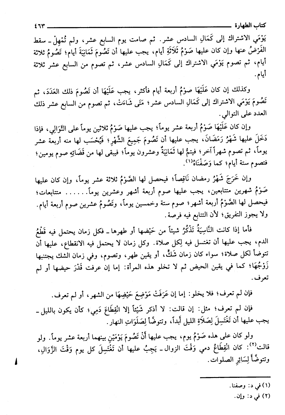 ولو كان على هذه صوم يوم، يجب عليها أن تصوم يومين بينهما أربعة عشر يوماً. ولو قالت: كان انقطاع دمي وقت الزوال- يجب عليها أن تغتسل كل يوم وقت الزوال، وتتوضأ لسائر الصلوات.