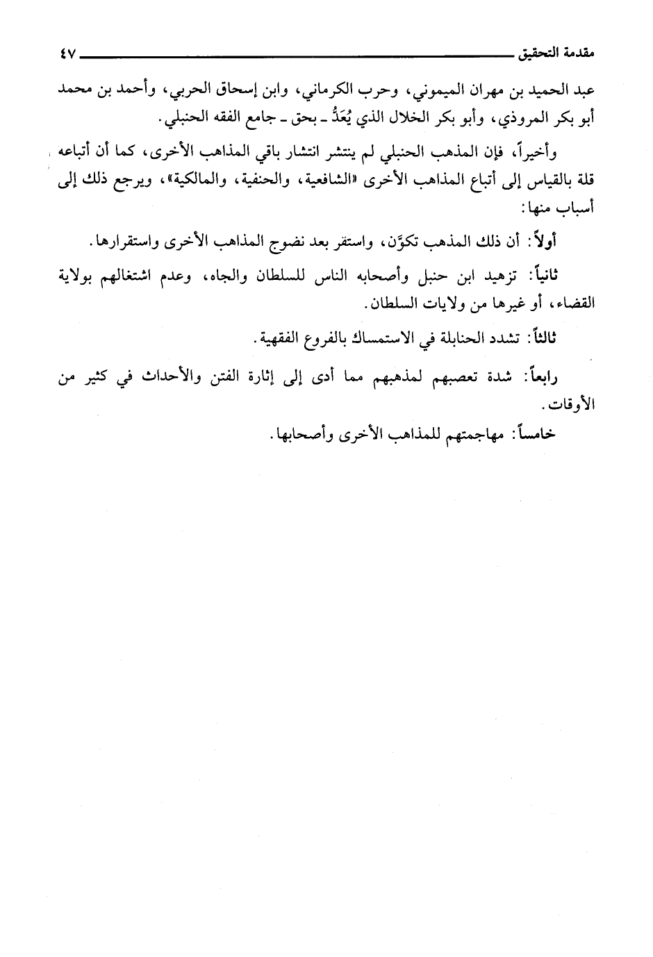 وأخيراً، فإن المذهب الحنبلي لم ينتشر انتشار باقي المذاهب الأخرى، كما أن أتباعه قلة بالقياس إلى أتباع المذاهب الأخرى "الشافعية، والحنفية، والمالكية"، ويرجع ذلك إلى أسباب منها: