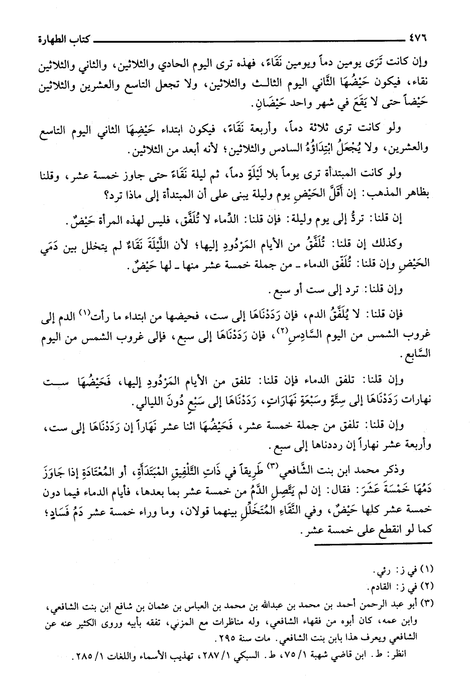 ولو كانت ترى ثلاثة دماً، وأربعة نقاءً، فيكون ابتداء حيضها الثاني اليوم التاسع والعشرين، ولا يجعل ابتداؤه السادس والثلاثين؛ لأنه أبعد من الثلاثين.
