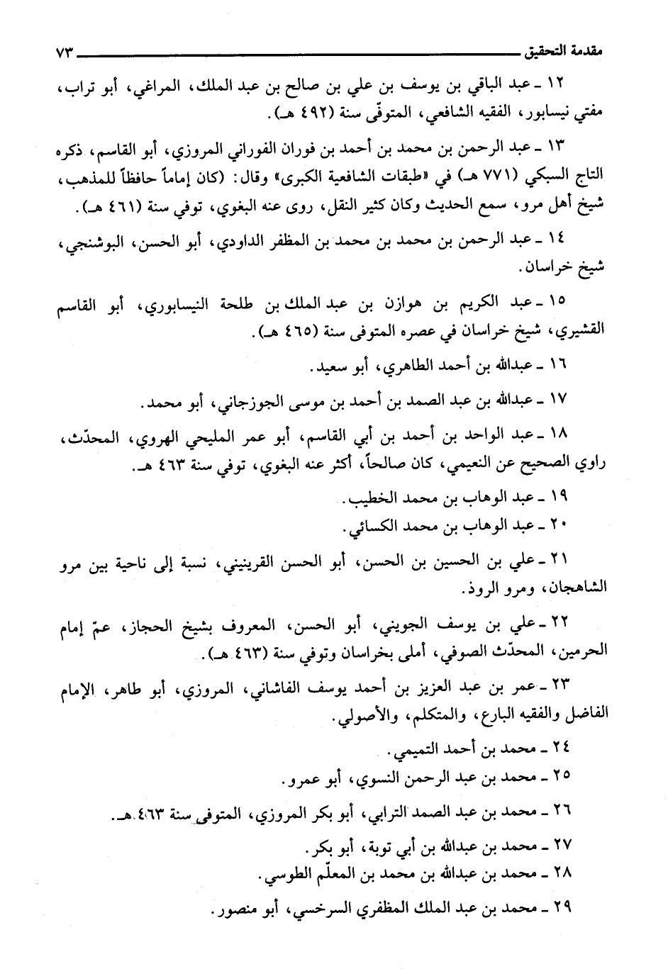 12 - عبد الباقي بن يوسف بن علي بن صالح بن عبد الملك، المراغي، أبو تراب، مفتي نيسابور، الفقيه الشافعي، المتوفي سنة (492 هـ).
