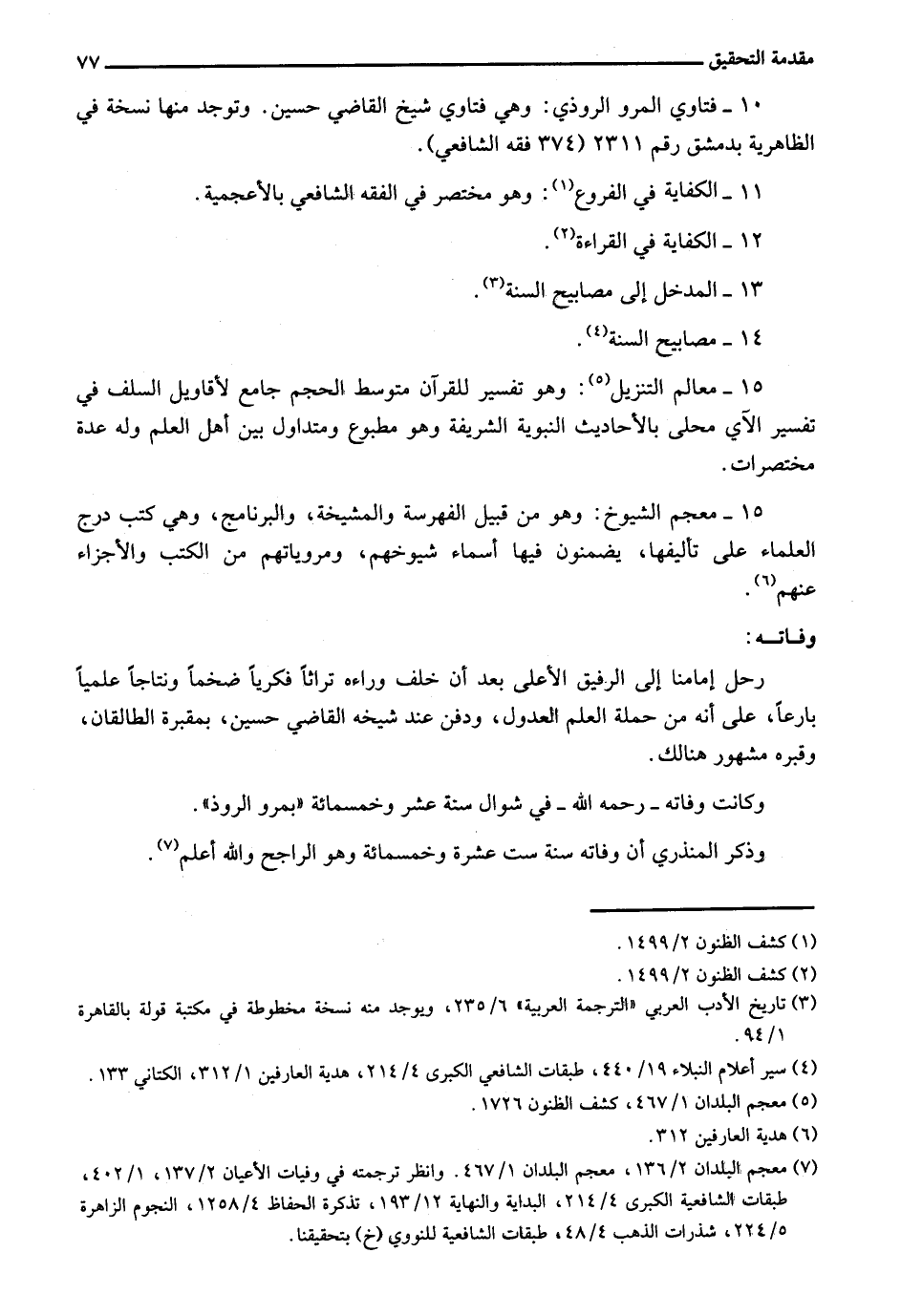 10 - فتاوي المرو الروذي: وهي فتاوي شيخ القاضي حسين. وتوجد منها نسخة في الظاهرية بدمشق رقم 2311 (374 فقه الشافعي).