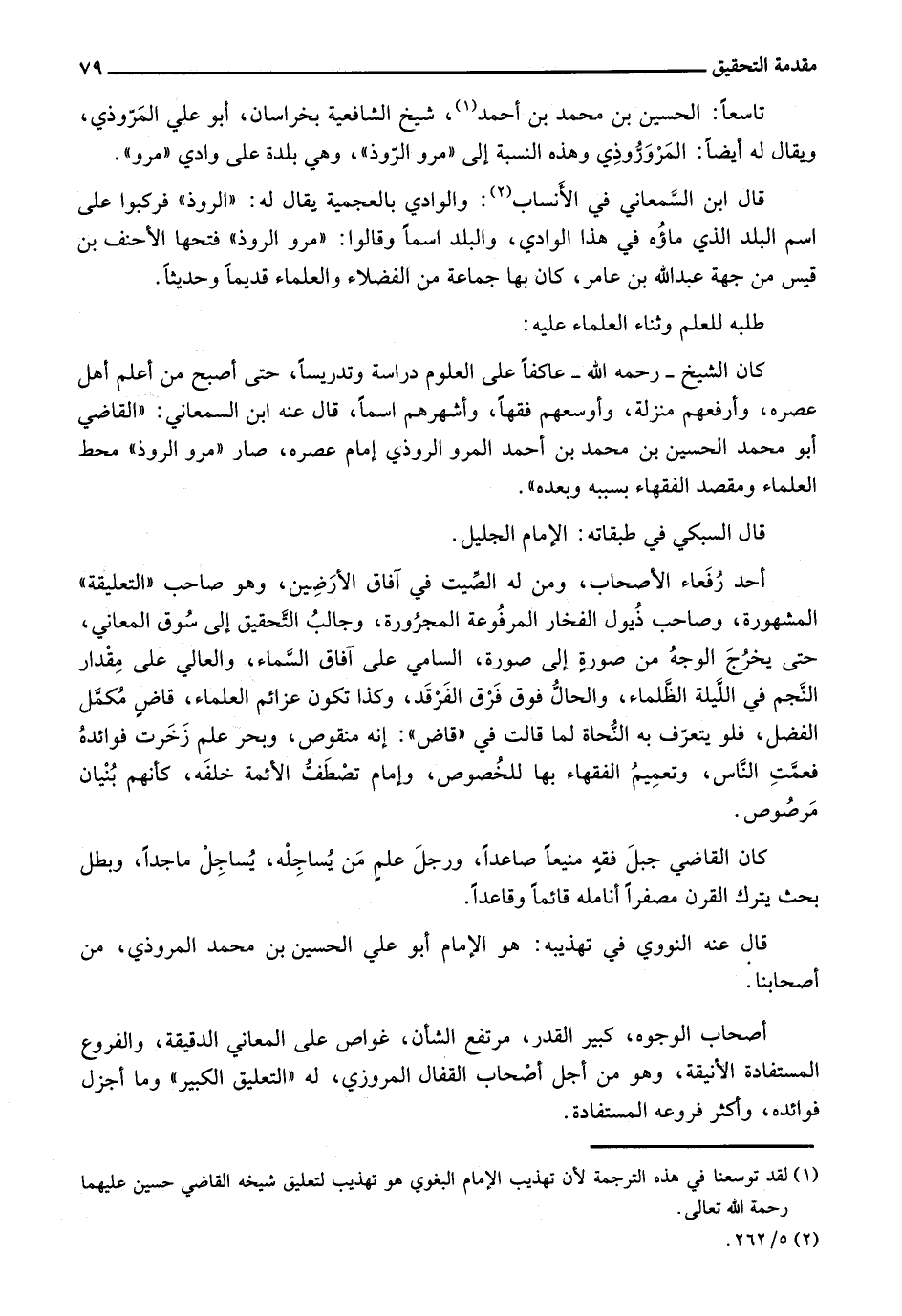 تاسعاً: الحسين بن محمد بن أحمد، شيخ الشافعية بخراسان، أبو علي المَرّوذي، ويقال له أيضاً: المروروذي وهذه النسبة إلى "مرو الروذ"، وهي بلدة على وادي "مرو".