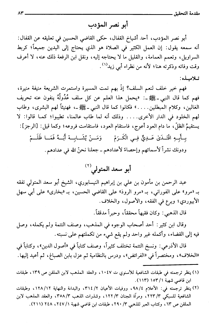 أبو نصر المؤدب، أحد أشياخ القفال، حكى القاضي الحسين في تعليقه عن القفال: أنه سمعه يقول: إن العمل الكثير في الصلاة هو الذي يحتاج إلى اليدين جميعاً؛ كربط السراويل، وتعمم العمامة، والقليل ما لا يحتاجه إليه، ونقل ابن الرفعة ذلك عنه، لا أعرف وقت وفاته وذكرته هنا؛ لأنه من نظراء أبي زيد.