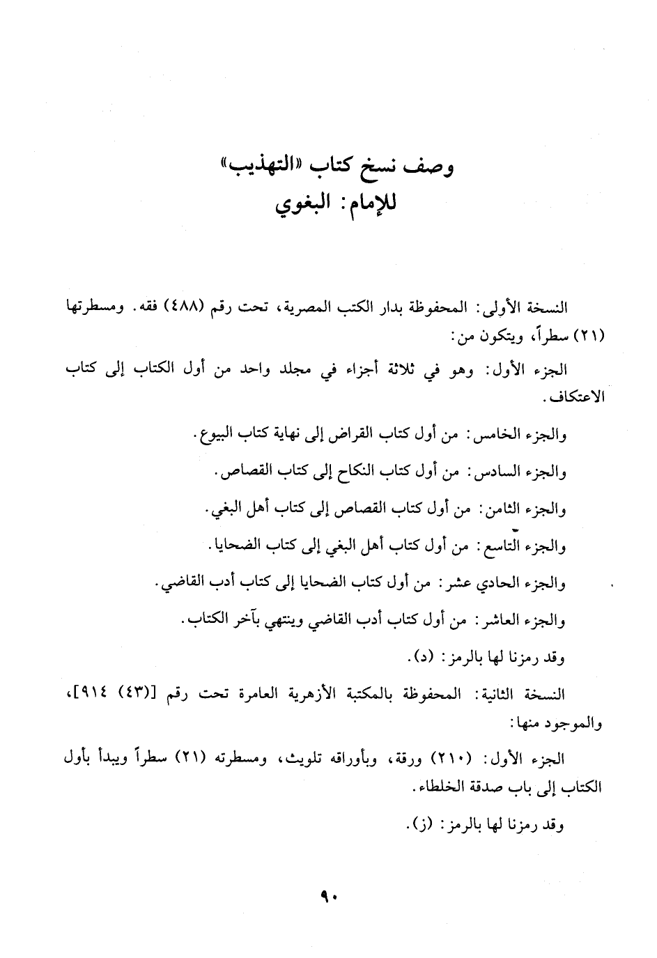 النسخة الأولى: المحفوظة بدار الكتب المصرية، تحت رقم (488) فقه. ومسطرتها (21) سطراً، ويتكون من:
