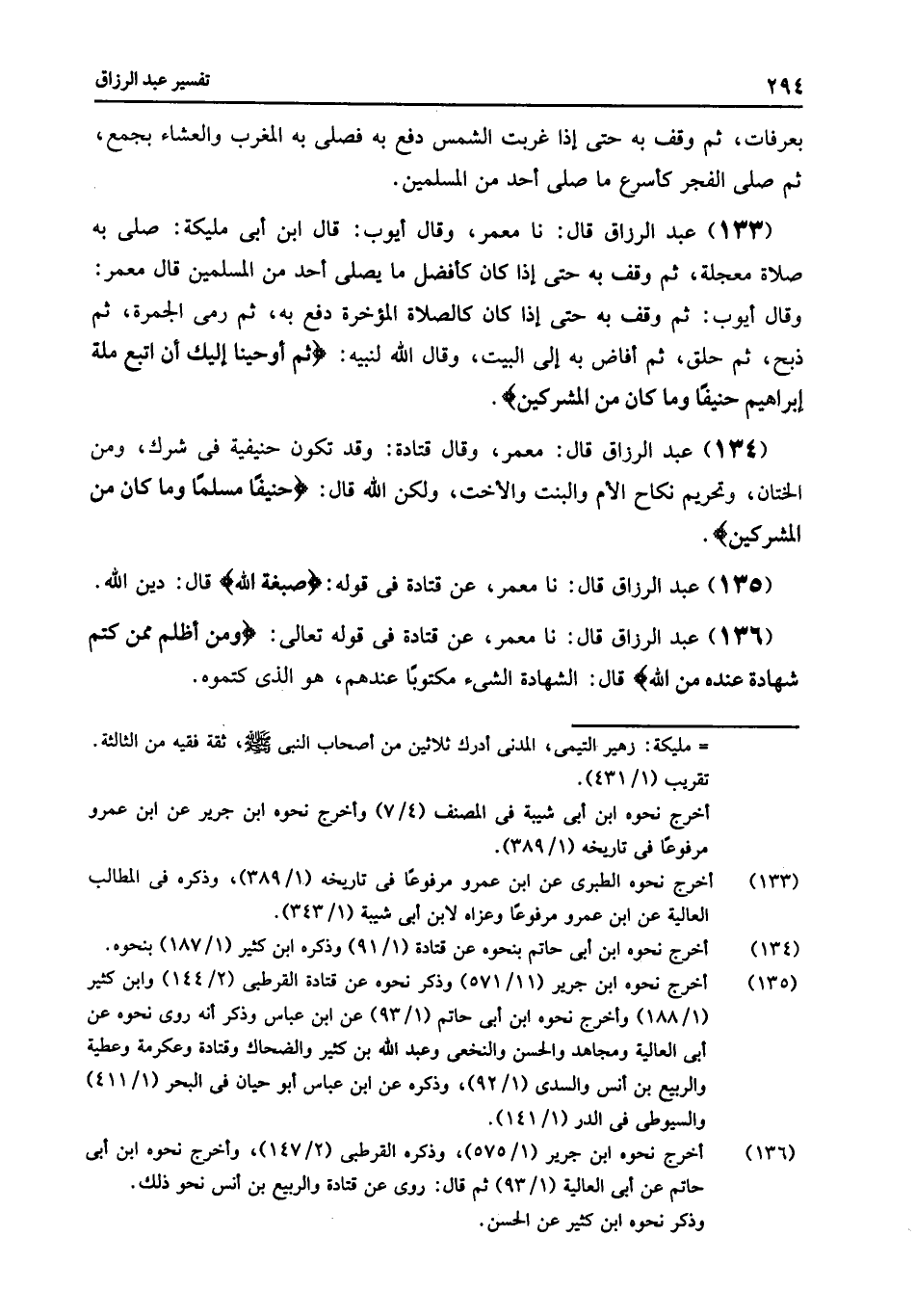 135 - نا مَعْمَرٌ , عَنْ قَتَادَةَ , فِي قَوْلِهِ {§صِبْغَةَ اللَّهِ} [البقرة: 138] قَالَ: «دِينُ اللَّهِ»