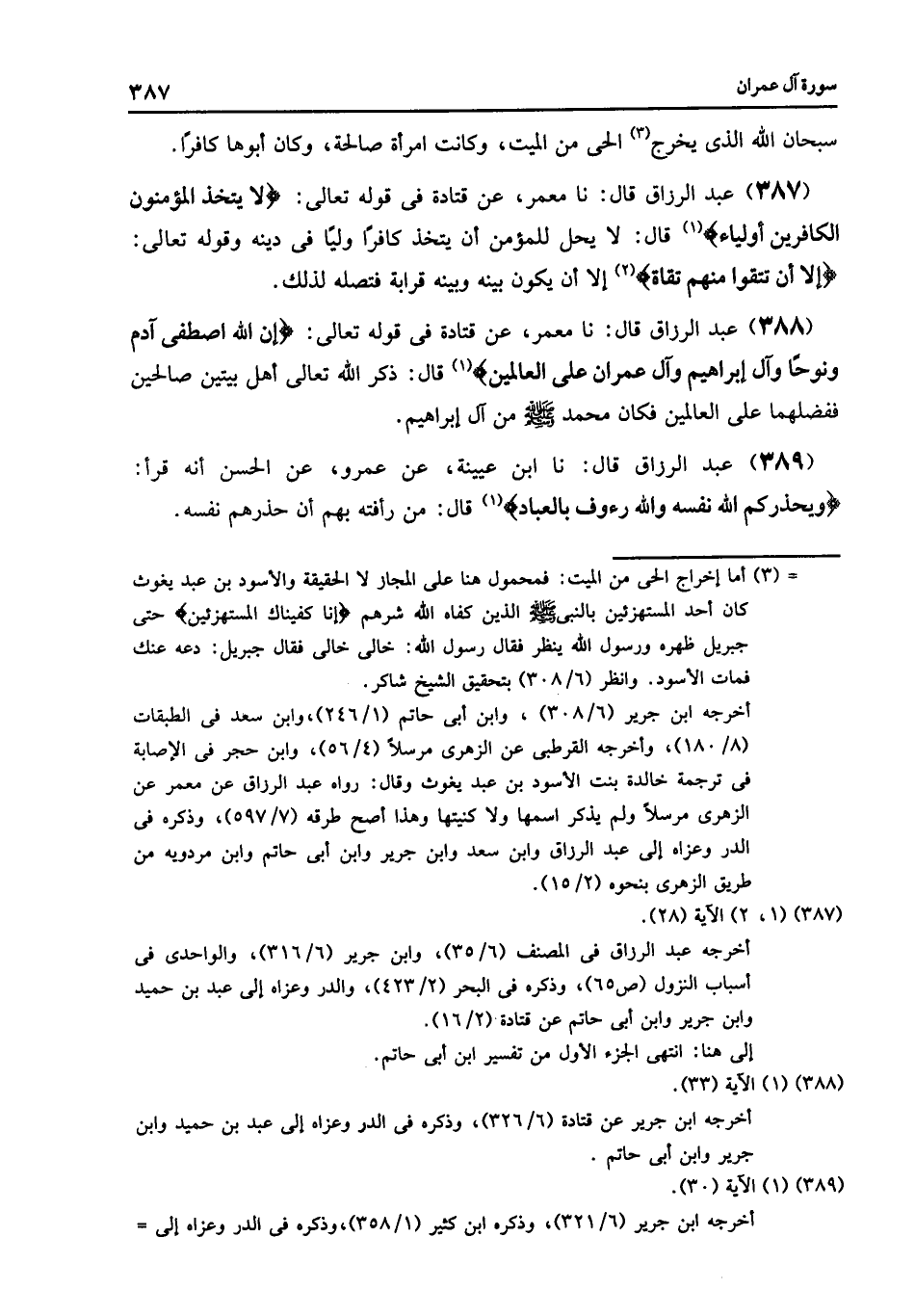 389 - نا ابْنُ عُيَيْنَةَ , عَنْ عَمْرٍو , عَنِ الْحَسَنِ , أَنَّهُ قَرَأَ: {§وَيُحَذِّرُكُمُ اللَّهُ نَفْسَهُ , وَاللَّهُ رَءُوفٌ بِالْعِبَادِ} قَالَ: «مِنْ رَأْفَتِهِ بِهِمْ أَنْ حَذَّرَهُمُ نَفْسَهُ»