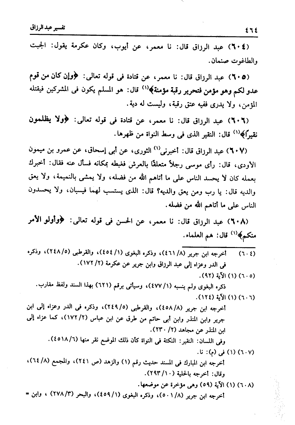 608 - نا مَعْمَرٌ , عَنِ الْحَسَنِ , فِي قَوْلِهِ تَعَالَى: {§وَأُولِي الْأَمْرِ مِنْكُمْ} [النساء: 59] قَالَ: «هُمُ الْعُلَمَاءُ»