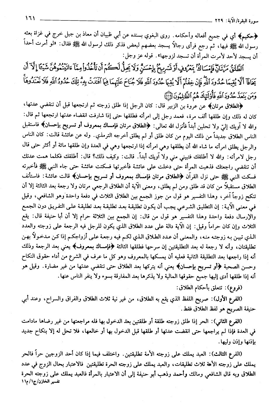 الطَّلاقُ مَرَّتانِ فَإِمْساكٌ بِمَعْرُوفٍ أَوْ تَسْرِيحٌ بِإِحْسانٍ وَلا يَحِلُّ لَكُمْ أَنْ تَأْخُذُوا مِمَّا آتَيْتُمُوهُنَّ شَيْئاً إِلاَّ أَنْ يَخافا أَلاَّ يُقِيما حُدُودَ اللَّهِ فَإِنْ خِفْتُمْ أَلاَّ يُقِيما حُدُودَ اللَّهِ فَلا جُناحَ عَلَيْهِما فِيمَا افْتَدَتْ بِهِ تِلْكَ حُدُودُ اللَّهِ فَلا تَعْتَدُوها وَمَنْ يَتَعَدَّ حُدُودَ اللَّهِ فَأُولئِكَ هُمُ الظَّالِمُونَ (229)