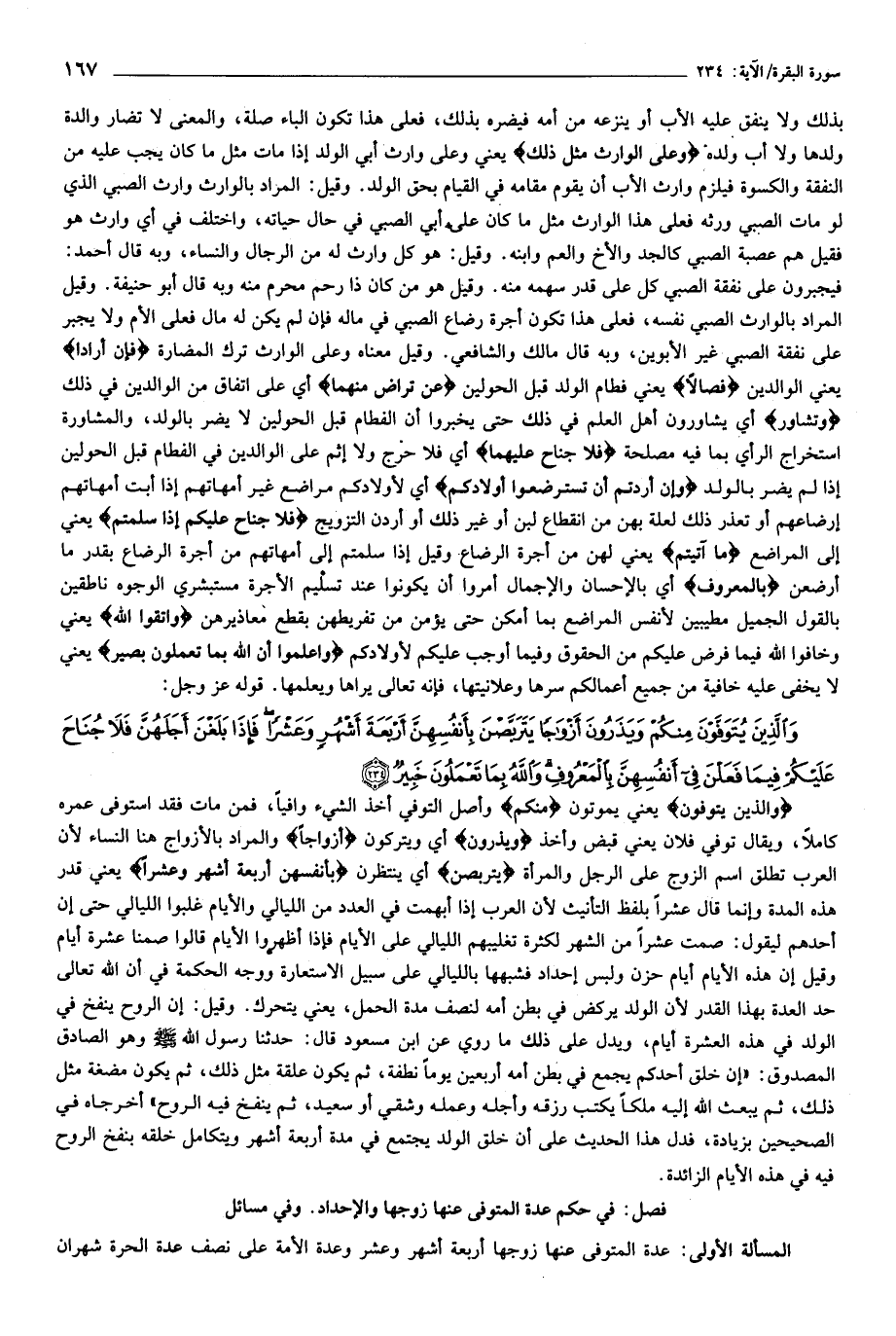 وَالَّذِينَ يُتَوَفَّوْنَ مِنْكُمْ وَيَذَرُونَ أَزْواجاً يَتَرَبَّصْنَ بِأَنْفُسِهِنَّ أَرْبَعَةَ أَشْهُرٍ وَعَشْراً فَإِذا بَلَغْنَ أَجَلَهُنَّ فَلا جُناحَ عَلَيْكُمْ فِيما فَعَلْنَ فِي أَنْفُسِهِنَّ بِالْمَعْرُوفِ وَاللَّهُ بِما تَعْمَلُونَ خَبِيرٌ (234)