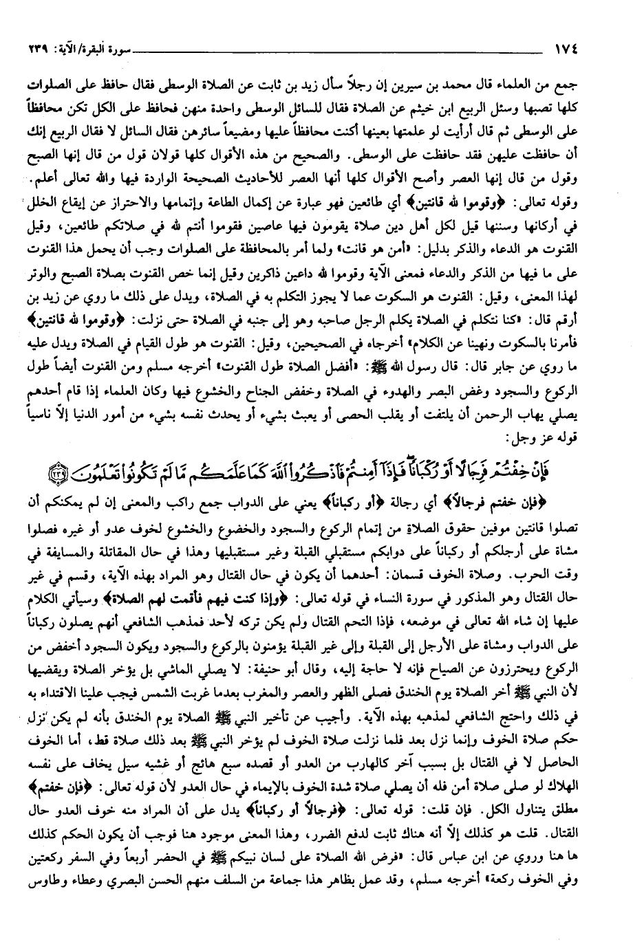 فَإِنْ خِفْتُمْ فَرِجالاً أَوْ رُكْباناً فَإِذا أَمِنْتُمْ فَاذْكُرُوا اللَّهَ كَما عَلَّمَكُمْ ما لَمْ تَكُونُوا تَعْلَمُونَ (239)