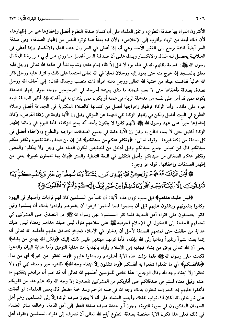لَيْسَ عَلَيْكَ هُداهُمْ وَلكِنَّ اللَّهَ يَهْدِي مَنْ يَشاءُ وَما تُنْفِقُوا مِنْ خَيْرٍ فَلِأَنْفُسِكُمْ وَما تُنْفِقُونَ إِلاَّ ابْتِغاءَ وَجْهِ اللَّهِ وَما تُنْفِقُوا مِنْ خَيْرٍ يُوَفَّ إِلَيْكُمْ وَأَنْتُمْ لا تُظْلَمُونَ (272)