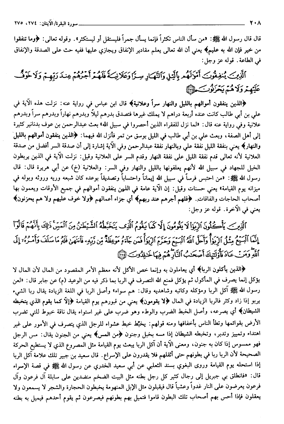 الَّذِينَ يَأْكُلُونَ الرِّبا لا يَقُومُونَ إِلاَّ كَما يَقُومُ الَّذِي يَتَخَبَّطُهُ الشَّيْطانُ مِنَ الْمَسِّ ذلِكَ بِأَنَّهُمْ قالُوا إِنَّمَا الْبَيْعُ مِثْلُ الرِّبا وَأَحَلَّ اللَّهُ الْبَيْعَ وَحَرَّمَ الرِّبا فَمَنْ جاءَهُ مَوْعِظَةٌ مِنْ رَبِّهِ فَانْتَهى فَلَهُ ما سَلَفَ وَأَمْرُهُ إِلَى اللَّهِ وَمَنْ عادَ فَأُولئِكَ أَصْحابُ النَّارِ هُمْ فِيها خالِدُونَ (275)