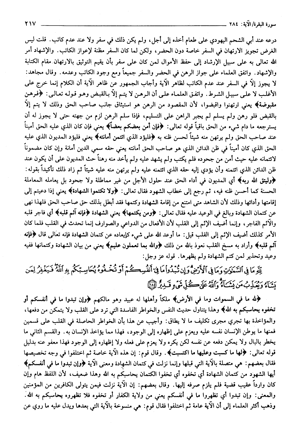 لِلَّهِ ما فِي السَّماواتِ وَما فِي الْأَرْضِ وَإِنْ تُبْدُوا ما فِي أَنْفُسِكُمْ أَوْ تُخْفُوهُ يُحاسِبْكُمْ بِهِ اللَّهُ فَيَغْفِرُ لِمَنْ يَشاءُ وَيُعَذِّبُ مَنْ يَشاءُ وَاللَّهُ عَلى كُلِّ شَيْءٍ قَدِيرٌ (284)
